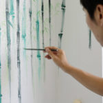 When you enter the room, the first thing you’ll notice is the fresh green color. Then the bamboo trees stretching straight up to the sky, making you feel just as if you were going deeper and deeper into a bamboo forest. Nishikawa said: “I wanted people who were tired of the bustle of city life to be able to really relax in this room”. The room was designed with various situations in mind, such as the view when a guest stands at the corner of the window, or the view when lying down on the bed. The artist changed his materials and colors depending on the position in the room, and coordinated the whole space while keeping it simple. The painting is a tranquil summer green. We do hope you will come and stay in the “Bamboo Artist’s Room”.