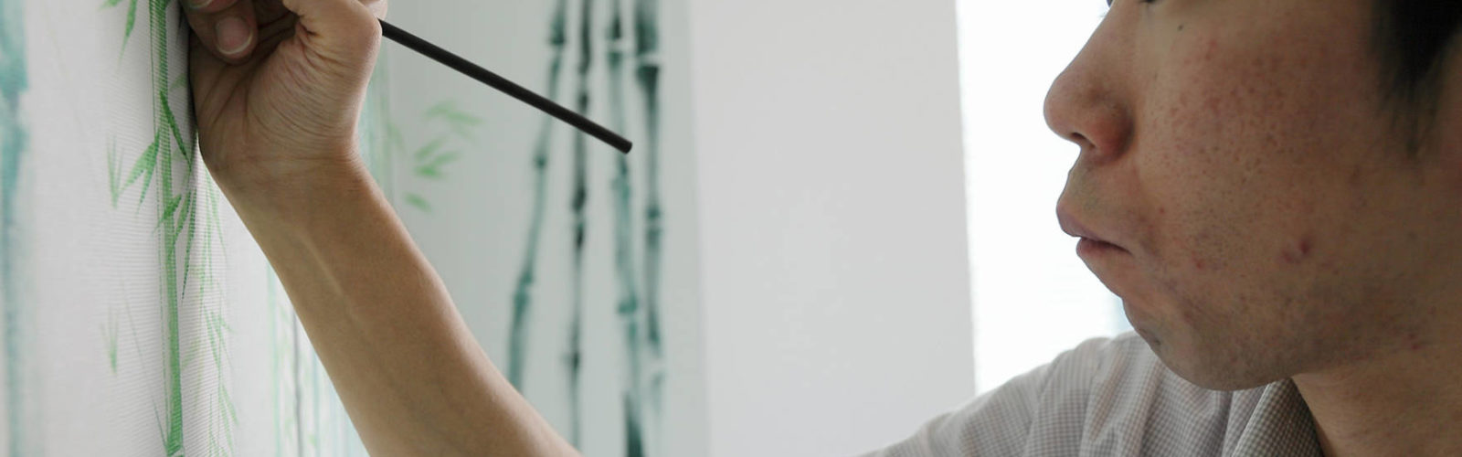 He creates works using Japanese painting materials, and recently has attracted attention for his works with Japanese ink.