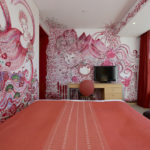 Ninagawa had painted the room based on the image of a beautiful Japanese angel descending and dancing among roses. Barababy and Baraluna, original characters created by Ninagawa, are drawn here and there on the room walls.