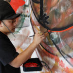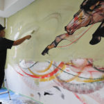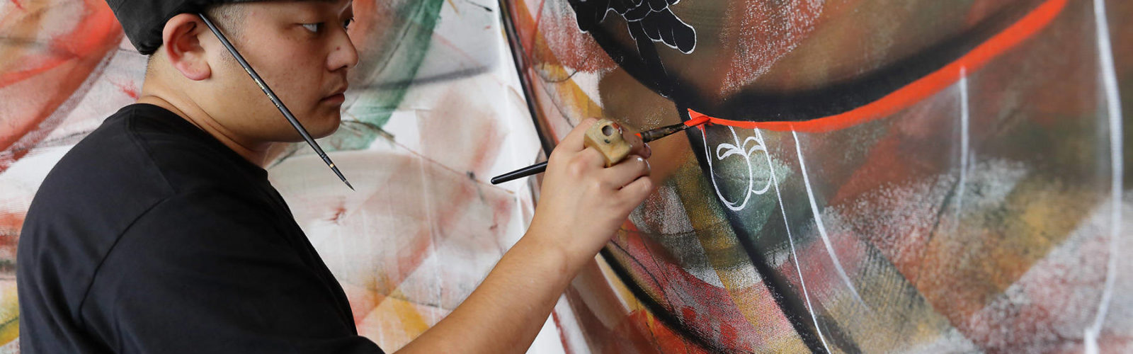 Started LivePaint from 2001, in the pursuit of extemporaneity and specificity of each location. Also decorate the insides and outsides of shops, and plan exhibitions and exhibits.In recent years, working on large “ema” for offerings and paintings for picture explanation, which fused unique Japanese thought and feeling.
