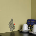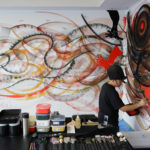 “I feel the “beauty of Japan” has, since ancient times, continued to live on in the essence of everything Japanese, such as thought, faith, culture and art”, says OZ – Yamaguchi Keisuke. The art on the wall is created based on “Yanone”, an auspicious program usually performed in Kabuki shows during the New Year and captures the beauty of Japanese culture which encompasses ambiguity and reality.