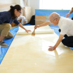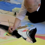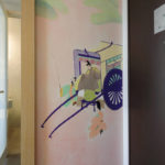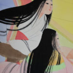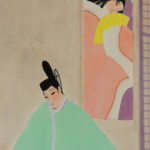 Drawn on the five small and large walls are the scenes from The Tale of Genji, through Mizuno’s imagination. Soft, feminine women are painted using Poster Colors and diluting it with water, to portray the sophisticated, graceful world of Heian Period.