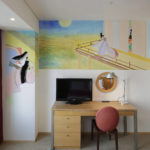 Mizuno, illustrator as well as art director, had chosen and completed the room with “The Tale of Genji” as the motif. “The Tale of Genji is a literary work and cultural heritage. I expressed the mythical atmosphere which I felt through the story in this Artist Room.”