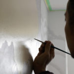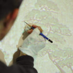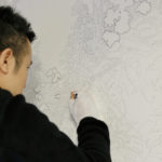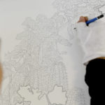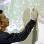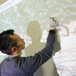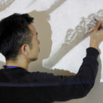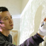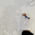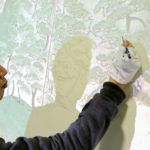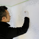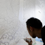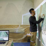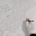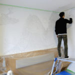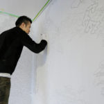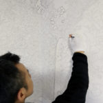 注1:下地を塗った壁に鉛筆で作画した後、様々な色で部分的にコーティングすることに より、光の加減で見え方の異なる壁を作り上げました。