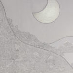 「部屋から見る無数のビル群が時間や季節の移ろいとともに表情を変え、一瞬も同じ風景がないことにインスパイアされた」という山田さん。この部屋に描かれたのは、大阪・金剛寺の≪日月山水図屏風≫をモチーフとした、時間の流れとともに変化し、おぼろに光る山水画です。※注1