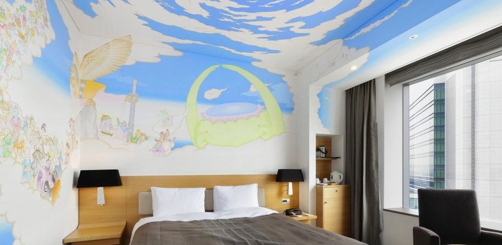For the 5th “Artist in Hotel Project”, where an entire room is decorated by an artist, the Japanese painter Nobuo Magome chose the theme of “Supernatural beings and the sky”.